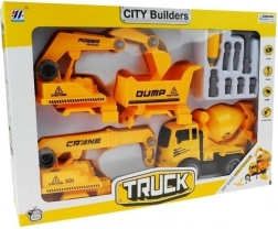Leuke set bouwvoertuigen voor kleine doe-het-zelvers, die de fijne motoriek en het logisch denken ontwikkelt. Bevat een betonmixer, kiepwagen, kraan en graafmachine.