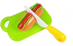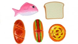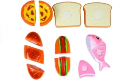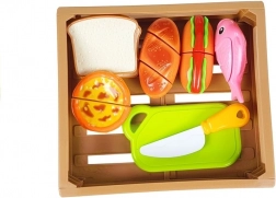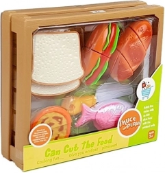 Ontdek de leuke wereld van koken met deze kinderset met voedingsmiddelen die met klittenband aan elkaar zitten. Kinderen kunnen een hotdog bereiden, vis serveren, brood snijden of een cupcake “bakken”. Het veilige kunststof mes en het snijplankje zorgen voor realistisch maar volledig veilig snijden.