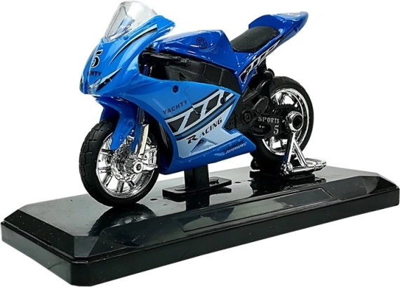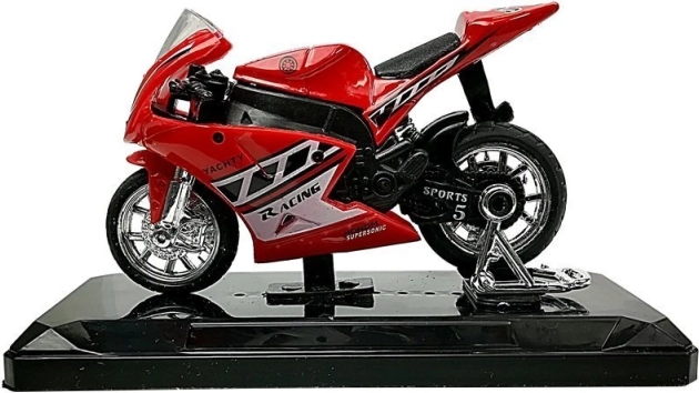 Stijlvol model van een sportmotor op schaal 1:18, perfect voor kleine en grote verzamelaars. Biedt geluidseffecten bij het indrukken van het achterste deel, draaibaar stuur, frictiemotor voor voorwaartse rit en een afneembare sokkel voor presentatie. Verkrijgbaar in 4 kleuren – geel, rood, groen en blauw.