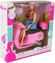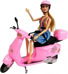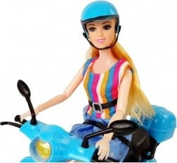 De pop in de set heeft lang, blond haar dat kan worden gekamd en gestyled. Ze draagt een stijlvolle jurk met blauwe en gekleurde strepen, wat haar elegante uitstraling compleet maakt. Beweegbare armen en benen maken het eenvoudig om de pop op de scooter te zetten, zodat kinderen hun eigen scènes en verhalen kunnen creëren.