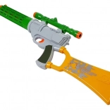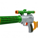 Speelgoed dat wapens imiteert komt vaak voor bij jongensspellen. Ze maken het spel afwisselender en helpen verschillende speelscenario’s te bedenken. Het zijn ook elementen die het gevoel versterken dat ze dappere strijders en helden zijn die tegen misdaad vechten. Het gepresenteerde schuimgeweer voor kogels zal jongens van enkele jaren zeker urenlang bezighouden en hen in staat stellen veel interessante spellen te organiseren, geïnspireerd door hun fantasie.