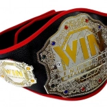 Een overwinning tijdens de training of in een leuk gevecht wordt nog zoeter met de kampioensgordel met gouden elementen en gekleurde steentjes. Perfect passende bokshandschoenen zijn ook inbegrepen.
