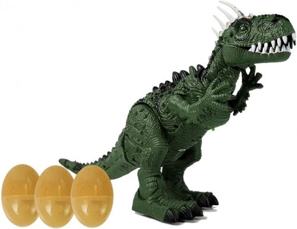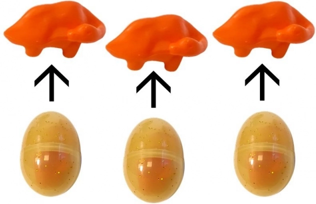 Plaats een ei in de opening op de rug en kijk hoe de dinosaurus het tijdens het lopen legt. In de verpakking zitten 3 stuks voor eindeloos speelplezier.