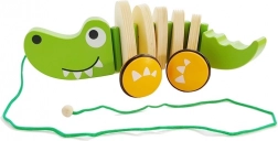 De vriendelijke groene krokodil met een glad houten oppervlak en oranje wieltjes is het ideale maatje voor wandelingen door het huis. Tijdens het trekken golft zijn lichaam, waardoor het spel nog leuker wordt.