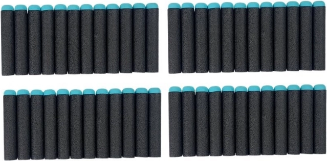 De set bevat 48 schuimkogels die licht zijn en gemakkelijk in compatibel speelgoed geladen kunnen worden.