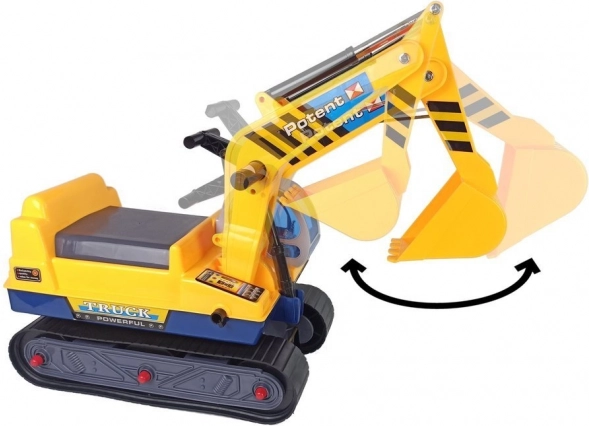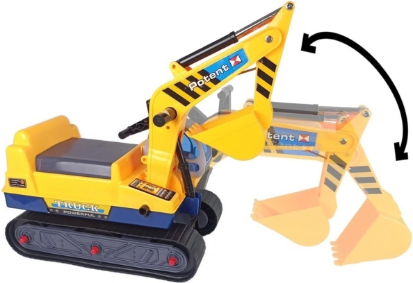 De arm van de graafmachine is eenvoudig te bedienen en kan indien nodig worden losgekoppeld. Kinderen kunnen losse materialen scheppen en verplaatsen en echte bouwwerkzaamheden naspelen.