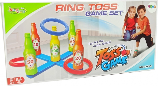 Dit kleurrijke spel voor kinderen vanaf 3 jaar biedt snelle fun en gezonde competitie. Het doel is eenvoudig: gooi ringen om flesjes met verschillende puntenwaarden en verzamel zoveel mogelijk punten. Dankzij de opvallende kleuren en cijfers begrijpen kinderen de regels snel en kunnen ze meteen beginnen.