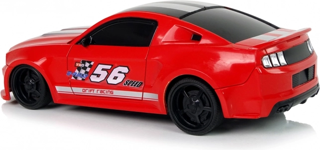 Het autootje heeft een lichte en stevige constructie, een sportief design, twee grijze strepen op de motorkap en sportieve stickers, voeg een vleugje pit toe. De rode kleur valt op en is niet te missen. Besturen is leuk, vooral voor de kleintjes, daarom maakt de meegeleverde afstandsbediening het mogelijk het kleine model van de raceauto te besturen. Het heeft twee aparte knoppen voor rijden vooruit/achteruit en zijwaarts.