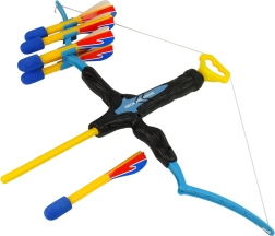 Inhoud van de set: Boog met zes pijlen van foam, alles geschikt voor kinderen vanaf 8 jaar. Afmetingen van de boog zijn 80 cm x 62 cm x 8 cm, pijlen hebben afmetingen van 26 cm x 4 cm x 4 cm.