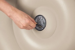 Dankzij het snelventiel blaas je de fauteuil in een mum van tijd op of laat je hem snel leeglopen. Na het leeglaten is hij licht en compact – ideaal voor reizen en kleine woningen.