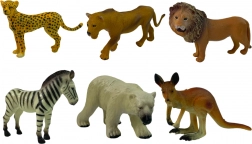 Deze set bevat 6 figuren die bekende Afrikaanse dieren voorstellen, zoals een leeuw, een zebra of een kangoeroe. Elk figuurtje is gemaakt van hard rubber, wat hun lange levensduur en duurzaamheid garandeert. De hoogte van de figuren varieert van 9 cm tot 10 cm, wat zorgt voor gemakkelijke hantering voor kinderen vanaf drie jaar.