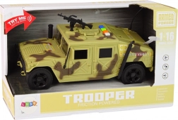 Ontworpen voor kleine soldaten die militaire technologie bewonderen. Dit militair voertuig heeft een breed chassis en een realistisch ontwerp, inclusief een dakpistool dat een echte militaire auto nabootst. Breng het spel tot leven met geluidseffecten, waaronder claxon, schieten en motorstart, vergezeld van koplampen voor meer spelauthenticiteit.