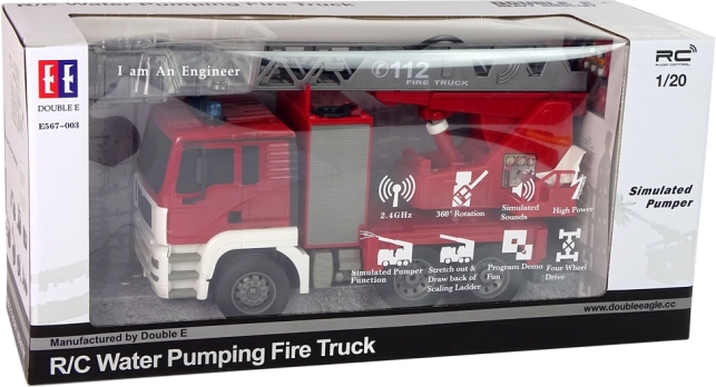 De brandweerwagen wordt gevoed door een 4,8 V 400 mAh accu, die is inbegrepen. Voor de afstandsbediening gebruik je 2 batterijen van het type AA 1,5 V (niet inbegrepen). Het speelgoed is geschikt voor kinderen ouder dan 6 jaar. De set heeft een CE-certificaat en voldoet aan de EN 71-norm. Verpakt in een kartonnen doos met transparant venster, ideaal als cadeau.