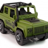 De groene terreinwagen vervoert de grote hagedis eenvoudig en redt hem uit benarde situaties. Het voertuig wordt geleverd met schroeven die de afzonderlijke onderdelen vastzetten. De set bevat een schroevendraaier waarmee de auto kan worden vast- en losgeschroefd. Door de schroeven te draaien traint de peuter de handjes, wat voorbereidt op toekomstig leren schrijven en de handfunctie ontwikkelt.