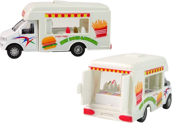 In de set vind je twee modellen campers. De een werkt als lodziarnia, de ander als fast-food. Word de bestuurder die elk kind verblijdt met heerlijk eten. De campers zijn wit van kleur, aangevuld met karakteristieke stickers voor elk model.