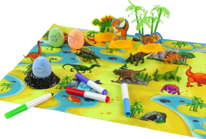Deze uitgebreide doe-het-zelf set zal alle kleine dinofans blij maken. In de doos vind je 4 eieren om in te kleuren, 6 gedetailleerde figuren, een mat met prehistorische omgeving en accessoires om de scène af te maken. De eieren kunnen veilig worden tentoongesteld op stabiele vulkaanstandaards, de figuren van hard rubber zijn duurzaam en liggen prettig in de hand.