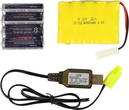 Inclusief oplaadbare accupack met USB‑kabel en batterijen voor de controller – na het uitpakken kun je direct van start.