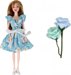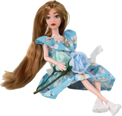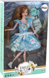 Pop Emily (30 × 7 × 4 cm) is de ideale speelkameraad voor elke dag. Het lange haar in donkerblonde tint is gemakkelijk te kammen en te versieren, zodat kinderen eindeloos veel kapsels kunnen creëren. De blauwe jurk met bloemenpatroon is afgewerkt met een kanten strikje en een klein “diamant”-detail bij de hals, wat de pop een elegante uitstraling geeft.