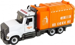 Interactieve schroefbare vuilniswagen in oranje-witte uitvoering biedt kinderen realistisch speelplezier en leren. Hij biedt lichten en geluiden, frictie-aandrijving, deuren die open kunnen en een bewegende lift voor bakken. Inclusief schroevendraaier met verwisselbare bits voor uit elkaar halen en weer in elkaar zetten, wat de fijne motoriek en creativiteit ontwikkelt. Geschikt voor kinderen vanaf 3 jaar.