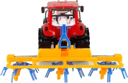 De achterste oranje-blauwe hark draait tijdens het rijden en simuleert echt werk op het veld. Stimuleert de verbeelding en rollenspel.