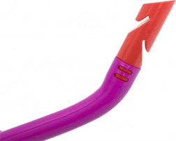 De snorkel met ergonomisch siliconen mondstuk, uitblaasventiel en spatbescherming vergemakkelijkt het ademen en beperkt het binnendringen van water in de buis.