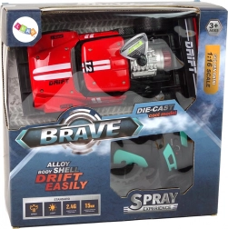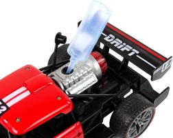 De sportieve RC-auto in schaal 1:16 valt meteen op door het opvallende design en het stoom-effect uit de uitlaat na het bijvullen van water met de pipet. Tijdens het rijden gaan de voorste LED-lampen branden, waardoor driften en racen nog realistischer aanvoelen.