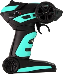De ergonomische 2.4G-afstandsbediening biedt intuïtieve besturing vooruit/achteruit en rechts/links, inclusief een automatische rijmodus en een knop voor de uitlaatverlichting. De lichte maar stevige constructie en rubberen banden zorgen voor stabiliteit en goede tractie op diverse ondergronden.