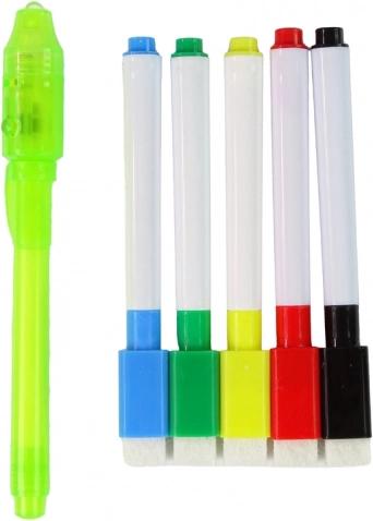 Dit kinderbord stimuleert de fantasie en het leren op een speelse manier. Met de LED-stift maken kinderen op het speciale paneel stralende tekeningen die in het schemerdonker echt tot leven komen. De andere zijde dient als whiteboard voor schrijven en tekenen met uitwisbare stiften, zodat ze letters, cijfers en de eerste sommen steeds opnieuw kunnen oefenen.