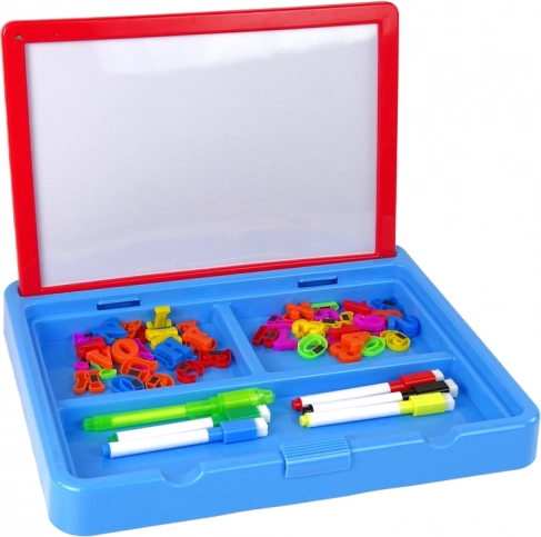 Bijgevoegd is een praktische opbergdoos met 3 vakken voor stiften, magnetische letters en cijfers. Het bord is een uitstekende educatieve hulp voor kleuters: het ontwikkelt creativiteit, concentratie en motoriek en helpt dankzij de magneten bij het leren van het alfabet en rekenen.