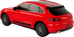 Gedetailleerde uitvoering van de Porsche Macan Turbo op schaal 1:24 met elegante rode lak en getinte ramen springt direct in het oog.