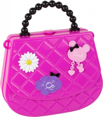 Schoonheidsset voor het versieren van haar is een roze plastic handtas vol geweldige modieuze accessoires die elk kapsel laten stralen. Perfect voor kleine beautyfans!
