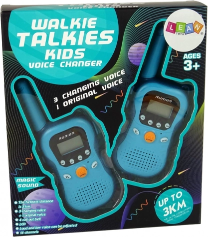 Leuke walkietalkies voor kinderen in het blauw bieden interactieve communicatie tot een bereik van 3 km. Ze hebben 16 kanalen, een stemveranderingsfunctie (vrouwelijk, mannelijk, robot), eenvoudige bediening met de TALK-knop en een beltoon-functie. Ideaal voor kleine ontdekkers en voor spelen buiten en binnen.
