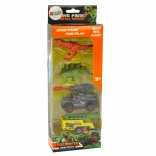 - 2 dinosaurussen, terreinwagen met raketwerper, aanhanger met kooi, originele verpakking