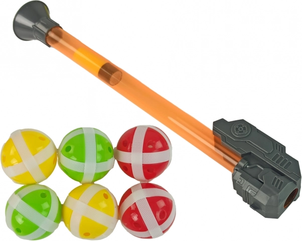 • De set bevat 6 plastic ballen, 3 pijlen met klittenband en een buisje voor het afschieten van 6 kogels.