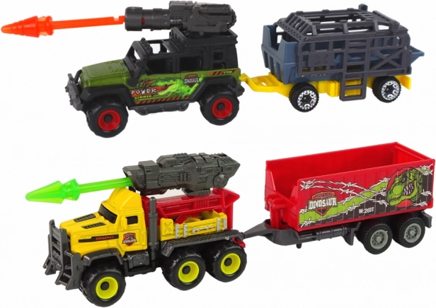 Grote dinosaurusset met helikopter en voertuigen brengt kinderen in een fascinerende wereld van ontdekkingen en avonturen. Bevat drie voertuigen met aanhangwagens voor het vervoeren van dinosaurussen, waarvan er twee een draaibare schieter hebben voor extra actie. Dankzij de gedetailleerde afwerking maken deze speelgoedjes het spel nog interessanter.