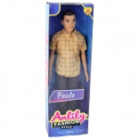 Maak kennis met de pop PAULO – een stijlvolle vriend voor dagelijks speelplezier. Hij heeft bewegende ledematen, draagt een geel geruit overhemd, donkere broek en witte sneakers. Dankzij het realistische uiterlijk en de hoogwaardige afwerking stimuleert hij de creativiteit en fijne motoriek van kinderen. Geschikt voor kinderen vanaf 3 jaar, met CE-certificering en norm EN71.