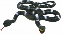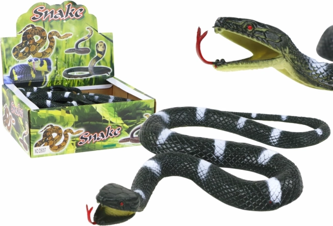 Kunstmatige rubberen slang zwart met witte strepen is een leuk speelgoedartikel, geschikt niet alleen voor kinderen maar ook als decoratief element. Het realistische uiterlijk en de flexibele constructie bieden veel gebruiksmogelijkheden.