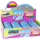 Dit speeltje is een ideaal cadeau, niet alleen voor kinderen die van kleuren en sprookjesachtige accenten houden, maar ook voor volwassenen. Het hanteren van de veer, het bekijken van de regenboogkleuren en het eenhoornmotief en het karakteristieke geluid bij elke uitrekking of draai helpen stress en spanning te verminderen.