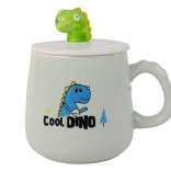 De mok wordt geleverd met een slim ontworpen deksel met een handgreep in de vorm van een groene dinosaurus, wat extra humor toevoegt. Zo kun je je drankje zorgeloos meenemen zonder te morsen.