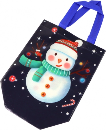Textielen cadeautas met sneeuwpop, donker, 23 × 21,5 × 11 cm