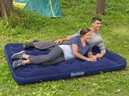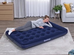 Het tweepersoons opblaasbare luchtbed van BESTWAY biedt comfortabele slaap thuis en onderweg. Dankzij de afmetingen 191 × 137 × 28 cm is er comfortabel plaats voor twee volwassenen. De coil-beam constructie zorgt voor stabiliteit, het zacht aanvoelende, fluweelachtige oppervlak voor aangenaam contact en de geïntegreerde voetpomp maakt snel oppompen overal mogelijk. Standaard is er een ingebouwd kussen en een snelsluit-/ontluchtingsventiel voor eenvoudig leeg laten lopen.