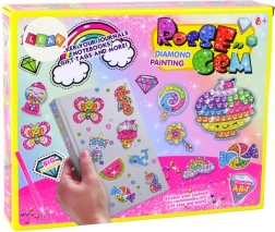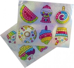 Met deze diamond painting set maken kinderen eenvoudig glinsterende stickers met snoepmotieven. Met behulp van een speciale pen en gekleurde steentjes vullen ze de voorbedrukte vormen in en ontstaan er in een mum van tijd originele versieringen voor schriften, rugzakken en etuis.