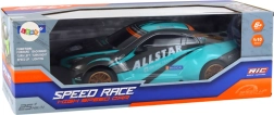 Beleef adrenaline met deze grote RC sportauto in schaal 1:10. Biedt snelheden tot 25 km/u, soepel sturen op 2.4G, opvallende LED-verlichting en een turkoois-zwarte look met gouden wielen. In de verpakking zitten een 7,4V-accu en een USB-oplader; plaats alleen nog 2× AA in de controller en rijden maar.