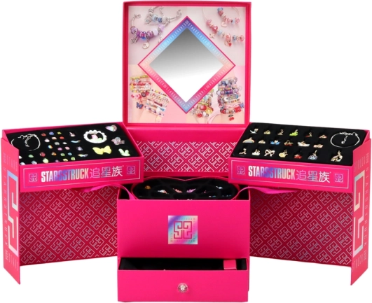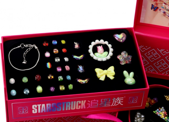 De set is ontworpen om creatieve expressie, geduld en vaardigheid bij kinderen te stimuleren. Dankzij het grote aantal elementen kunnen armbanden, kettingen en hangers precies volgens de fantasie van de jonge designer worden gemaakt. Uitgeklapt heeft het juwelenkistje afmetingen van 65 × 27 × 23 cm, zodat alles overzichtelijk geordend is.