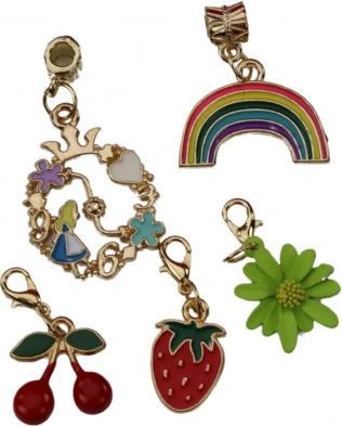 - Kralen, bedels (vlindertjes, bloemetjes, sterren, strikjes), gekleurde koordjes, gouden ketting/kettinkje, juwelenkistje