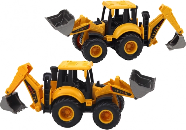 Bouwvoertuig graafmachine met twee verstelbare lepels geel