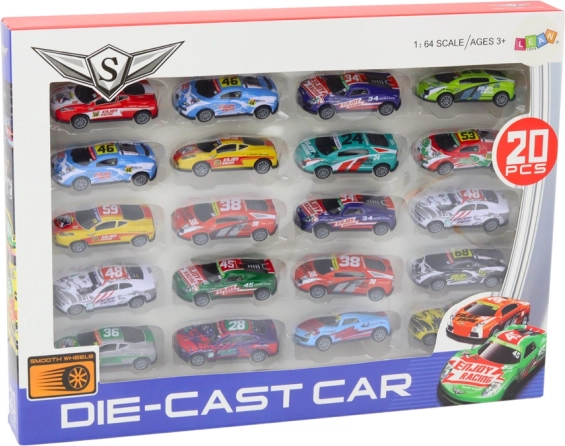 De set sportieve raceautootjes is een ideaal speelgoed voor kleine liefhebbers van autosport en races. Elk van de 20 autootjes op schaal 1:64 ziet eruit als een echte racewagen, klaar voor actie op de baan of waar dan ook.