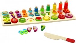 Houten educatieve plank voor het leren van wiskunde met fruit