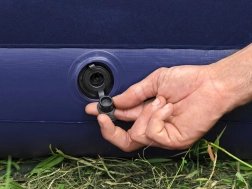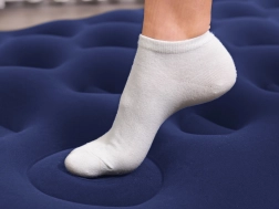 Het matras is eenvoudig op te blazen zonder elektriciteit – slechts enkele voetstoten volstaan. Ideaal voor kamperen en noodovernachtingen.