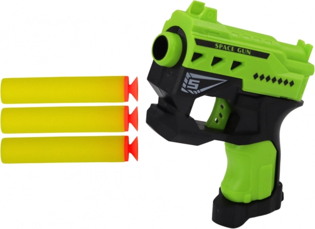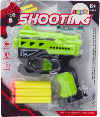Licht en duurzaam mini-pistool voor foam pijltjes met zuignappen in een aantrekkelijke groene kleur, ideaal voor kinderplezier thuis en buiten. Eenvoudig spannen en de trekker overhalen is ook voor jongere kinderen makkelijk; in de verpakking zitten 3 pijltjes met zuignap. Het spel ondersteunt fijne motoriek en verbeeldingskracht. Certificering CE, norm EN71, geschikt vanaf 6 jaar.